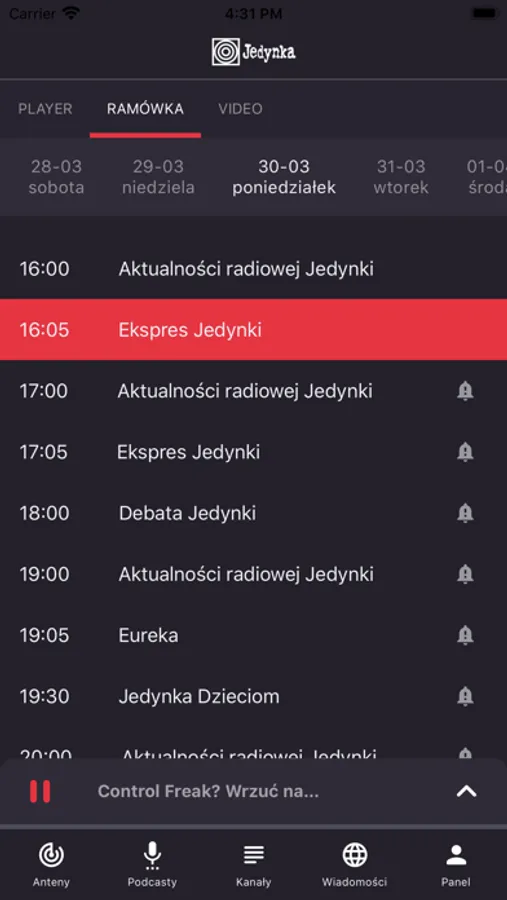• Słuchanie na bieżąco wszystkich stacji Polskiego Radia - 10 streamów audio i 2