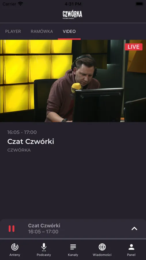 Aplikacja daje Ci także możliwość uruchomienia streamu wideo Czwórki i Polskiego Radia 24, dzięki czemu w dowolnym momencie podejrzysz, co dzieje się w radiowym studiu.