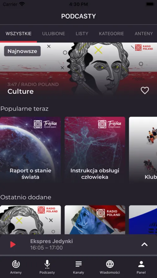 Dzięki aplikacji masz dostęp do stale aktualizowanej, bogatej biblioteki podcastów oraz do ponad 40 cyfrowych kanałów tematycznych z unikalnymi treściami. Przyjemności słuchania dostarczą Ci takie kanały jak Ballady, Pink Floyd, Szanty, Niezły Jazz, Wieczór Odkrywców czy... Las.