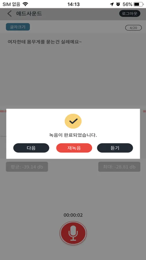 음성을 녹음하고 결과를 전송할 수 있습니다.