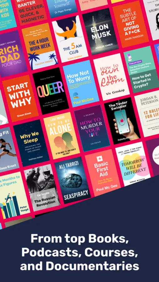 • We guarantee quality. We curate only the top creators – with New York Times best sellers, the latest Netflix documentaries, top-rated Apple and Spotify podcasts, and courses from the world’s most prestigious universities.