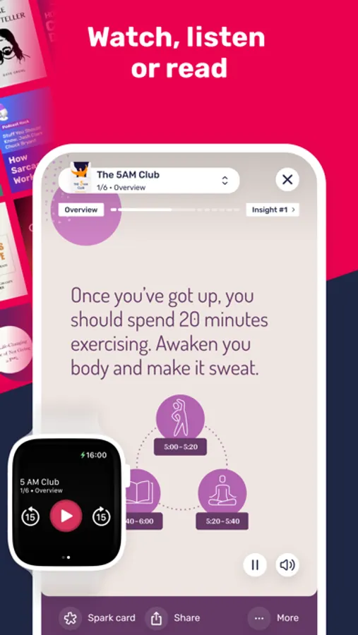 • You can bank the best bits for later. Save your favorite quotes, insights, and actions as Sparks to refer back to, and even categorize them into Boards to share with your friends.