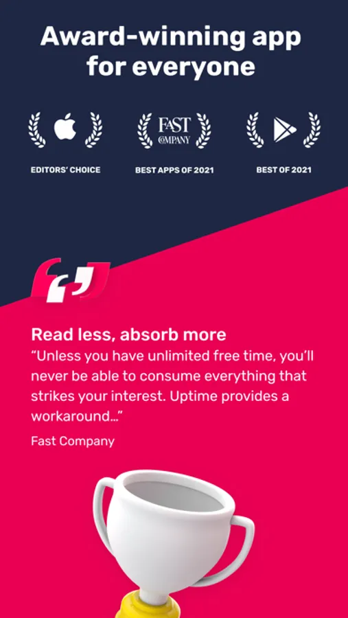 "Read less, absorb more: Unless you have unlimited free time, you’ll never be able to consume everything that strikes your interest. Uptime provides a workaround…" – Fast Company's best new apps of 2021