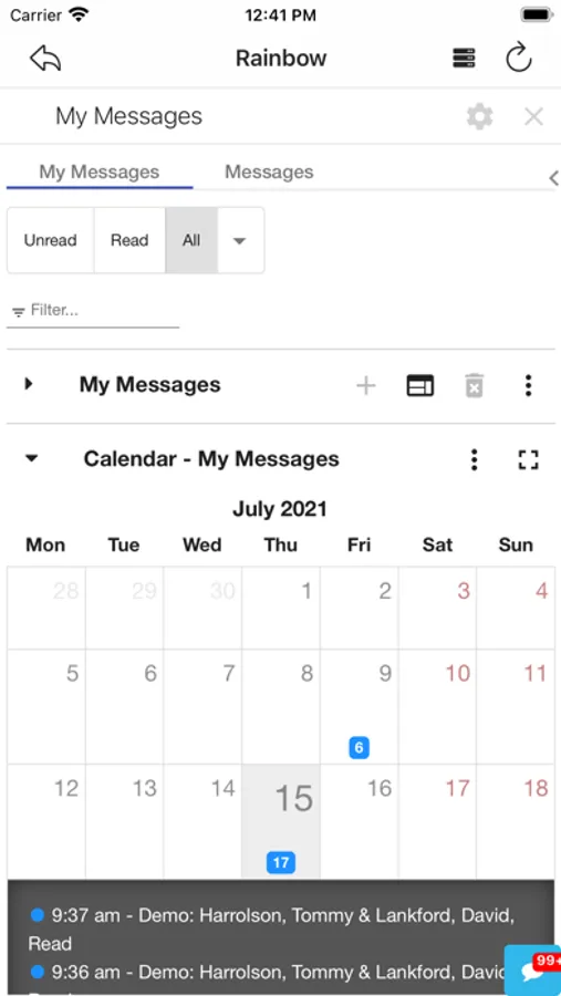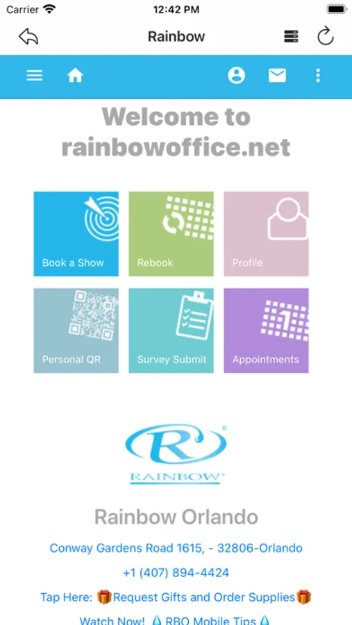 - Rainbow Client: Book a Show, Rebook, Profile, Appointments, Messages