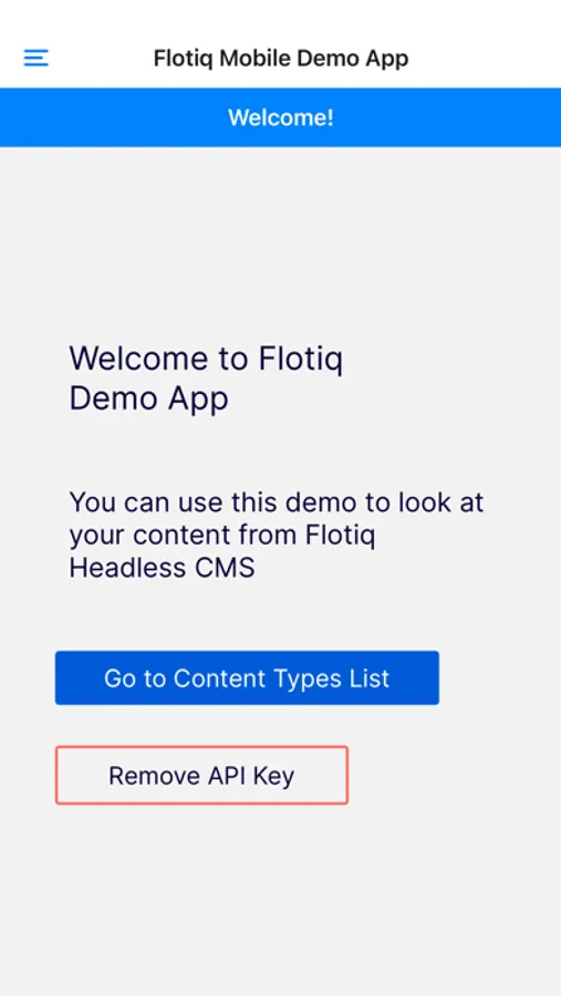 The Flotiq Expo app is a MIT-licensed React Native application that helps you jumpstart your next mobile project with Flotiq as a source of content. Use this app to preview your content, then fork and create your own shiny new application. Go create!