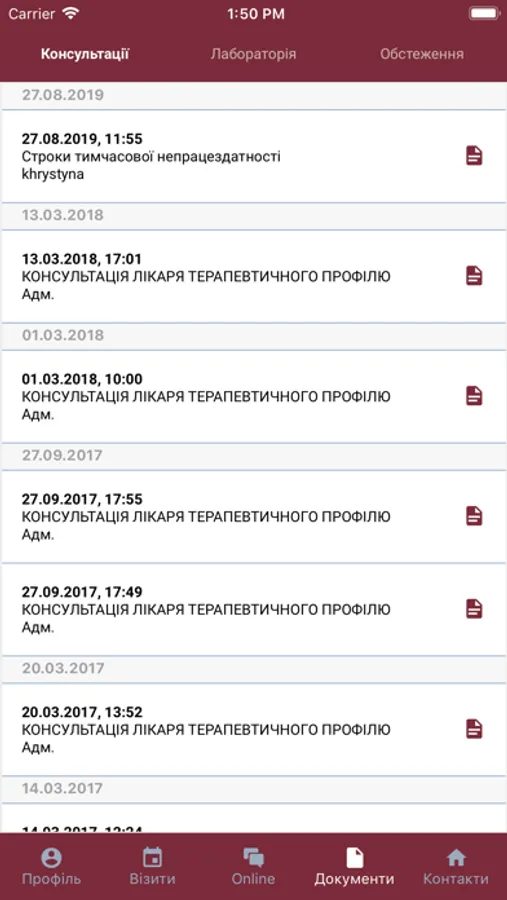 Описаний вище функціонал доступний у розділі Моя медична історія.