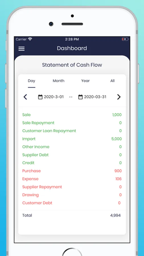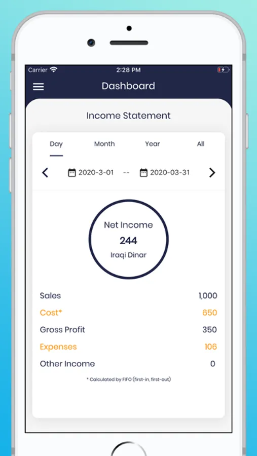• Get a clear overview of your financial data with interactive date-based metrics.