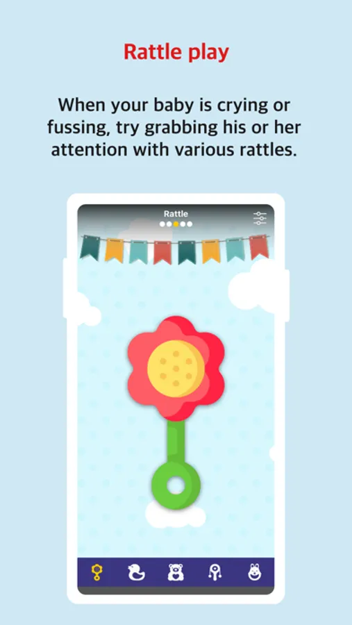 So I inserted a function of three baby toys (rattle, duck toy, whistle). (for your information, it worked great with this toy function whenever we are moving in a car, or when a baby starts to cry)