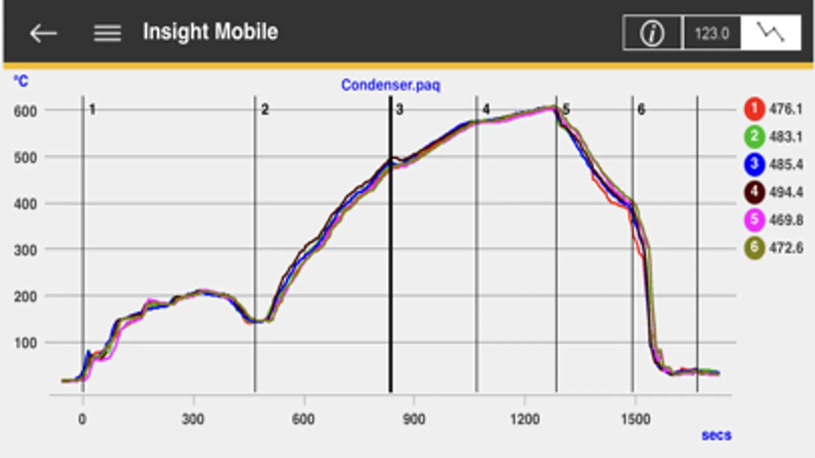 The Datapaq Insight Mobile App enables the user to check thermocouple status, reset and download data from compatible Bluetooth equipped dataloggers. In addition the user can display, analyze and share temperature profiles generated using all Datapaq thermal profiling systems.