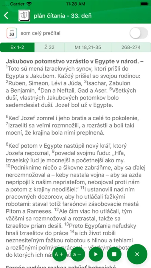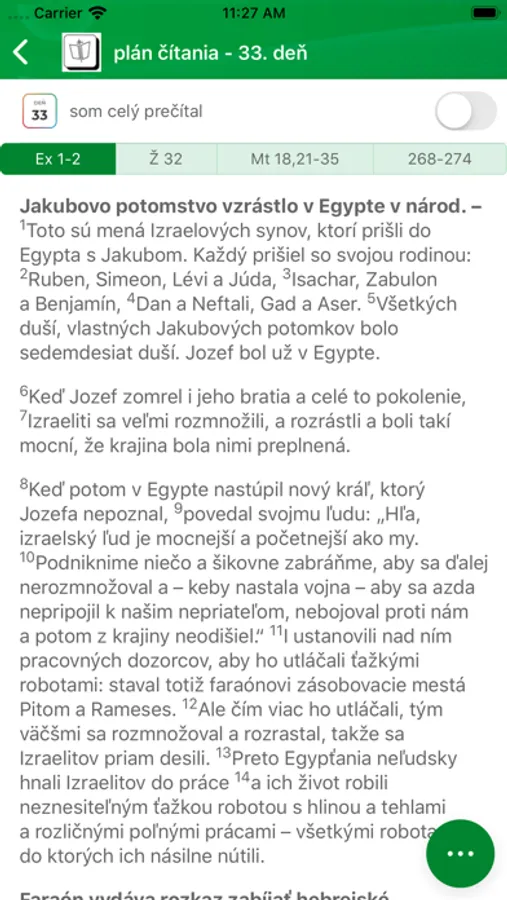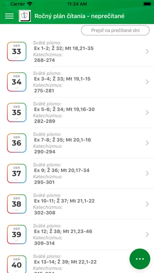 - štúdia Svätého písma rozdeleného do ročného plánu