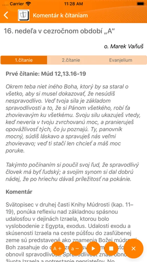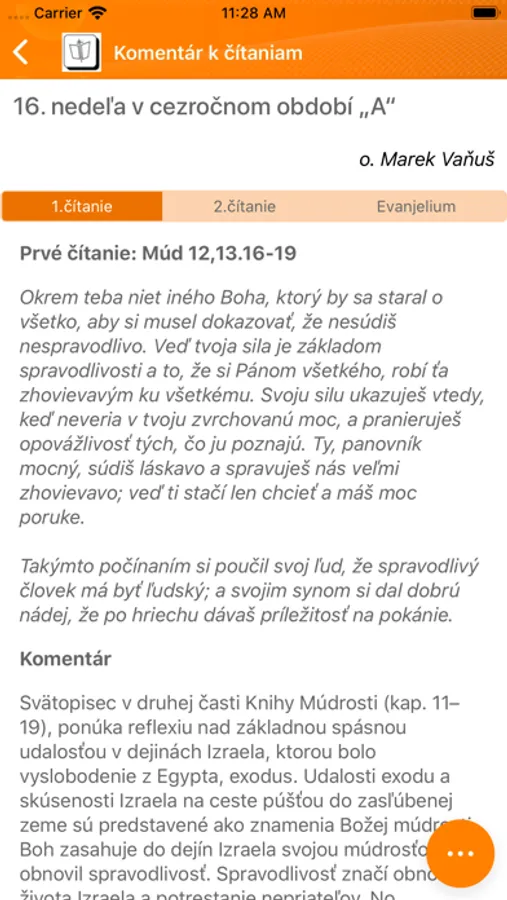 - zamyslením sa nad biblickými textami nediel a sviatkov pomocou komentárov