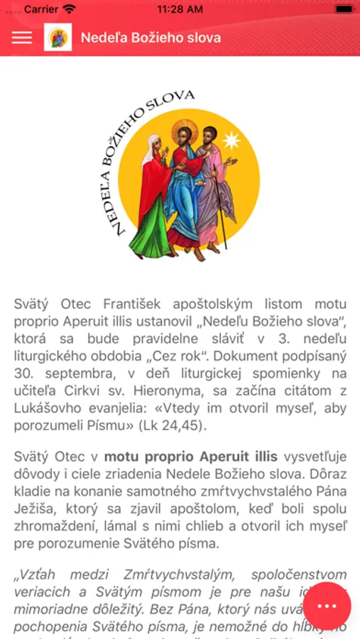 Táto aplikácia vznikla pri príležitosti Roka Božieho Slova. Jej cieľom je uľahčiť každodenné čítanie Svätého Písma a Katechizmu Katolíckej cirkvi. Pozýva na dennodenné stretnutie so živým Kristovým slovom formou: