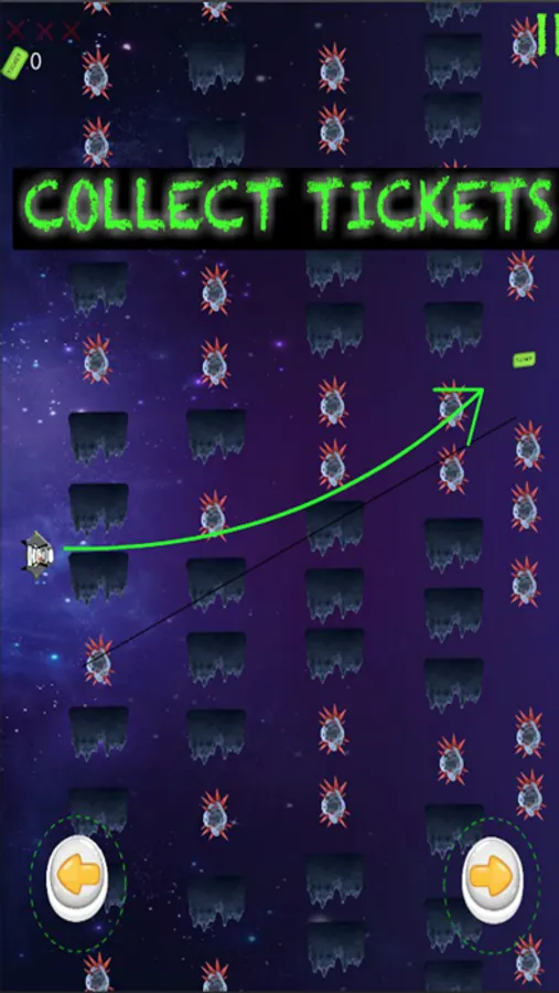 Ticket Run - Guide your ship back and forth through the maze of obstacles to collect tickets