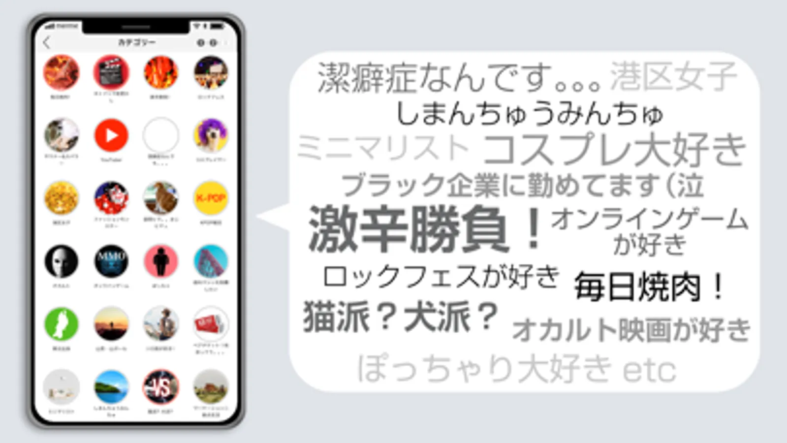 個性的な趣味や特徴でマッチングするから、シャイなあなたも、マニアックなあなたでも最初のデートからから会話が弾みます。