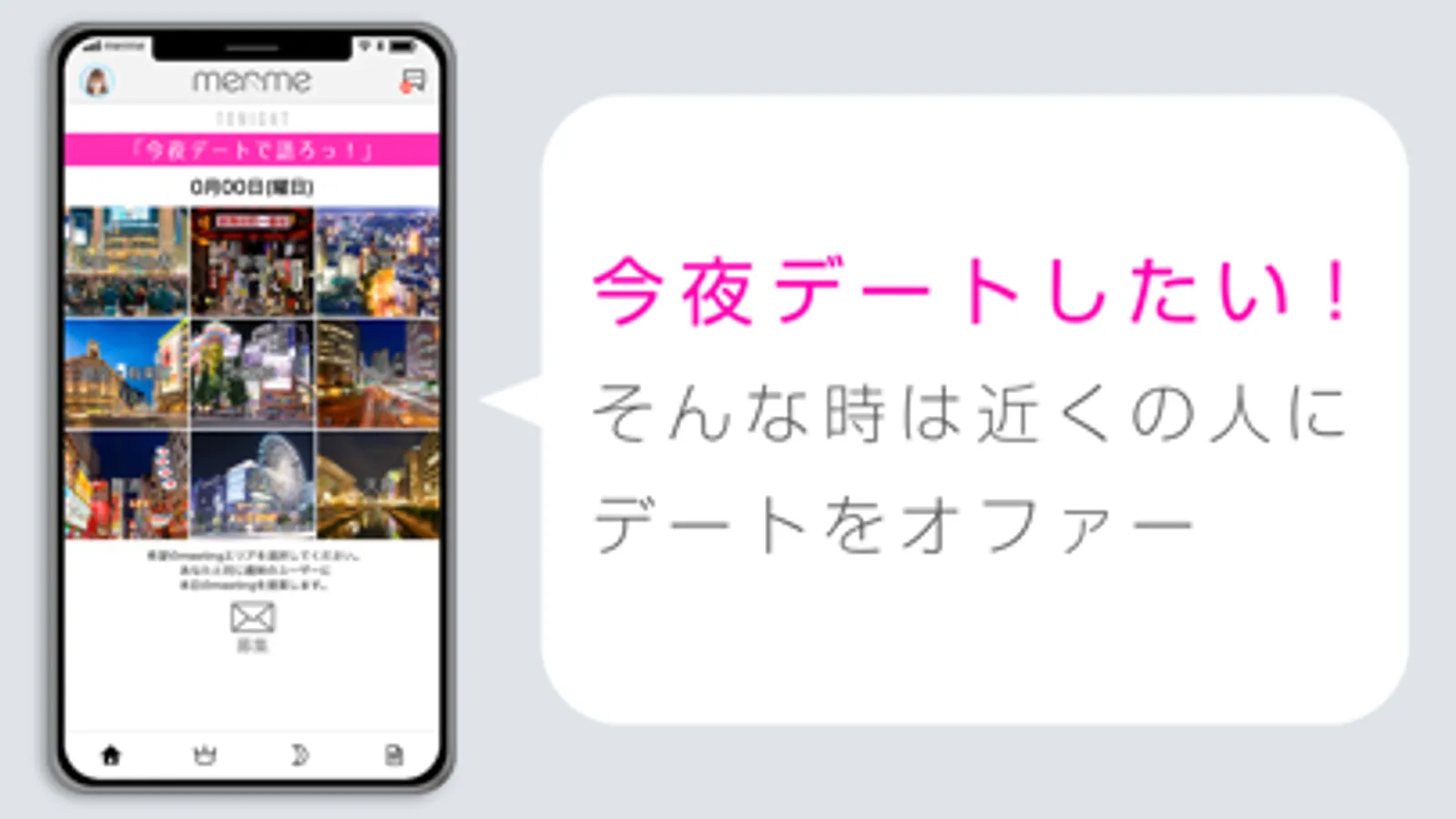 「merme(メルミー)」は、「デートに会話をコミット!」をコンセプトにした出会い探し・恋人探しのための恋活・婚活マッチングアプリです。