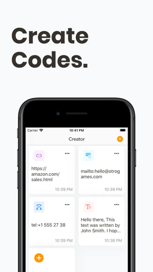 More than 10 types of codes supported: QR Code, Barcode, DataMatrix, Code128, Code39, EAN-8, EAN-13, PDF417, UPCE, ITF-14, Aztec.