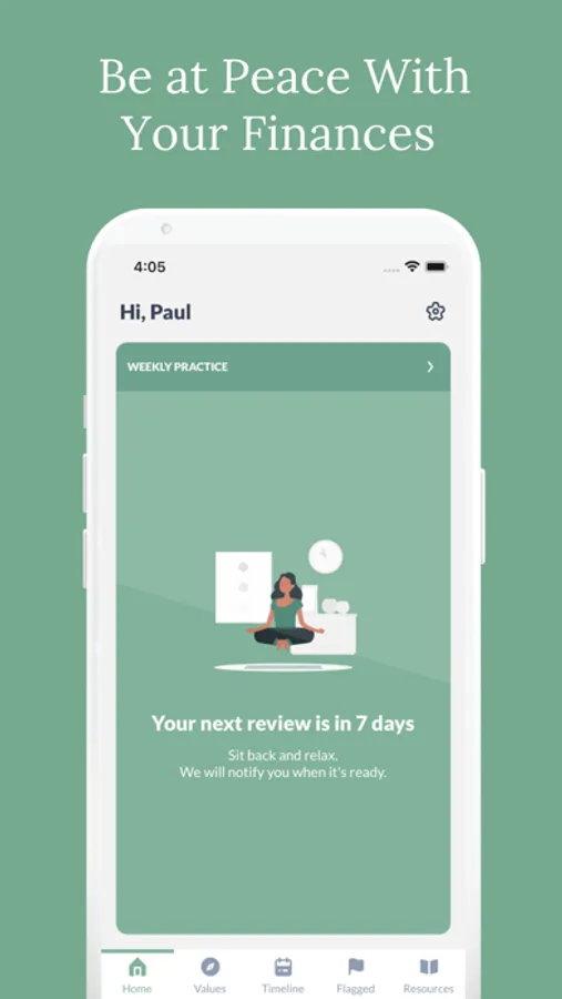 Engage in a regular practice with Allo — whether it's daily, weekly, or monthly — to be confident about your finances while not being so obsessed with it that you are trapped on your financial app 24/7. It's about meaningfully engaging with money, then setting down the phone, and living your life anxiety-free.