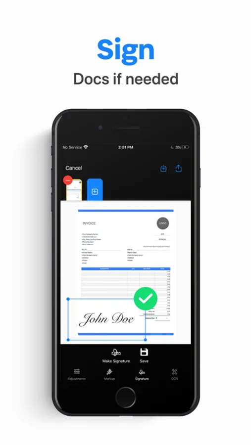 Quickly scan & sign documents, print or email them as multiple pages PDF or JPEG files. Scan anything you need including receipts, documents, paper notes, fax papers and pictures fast, easy & free!