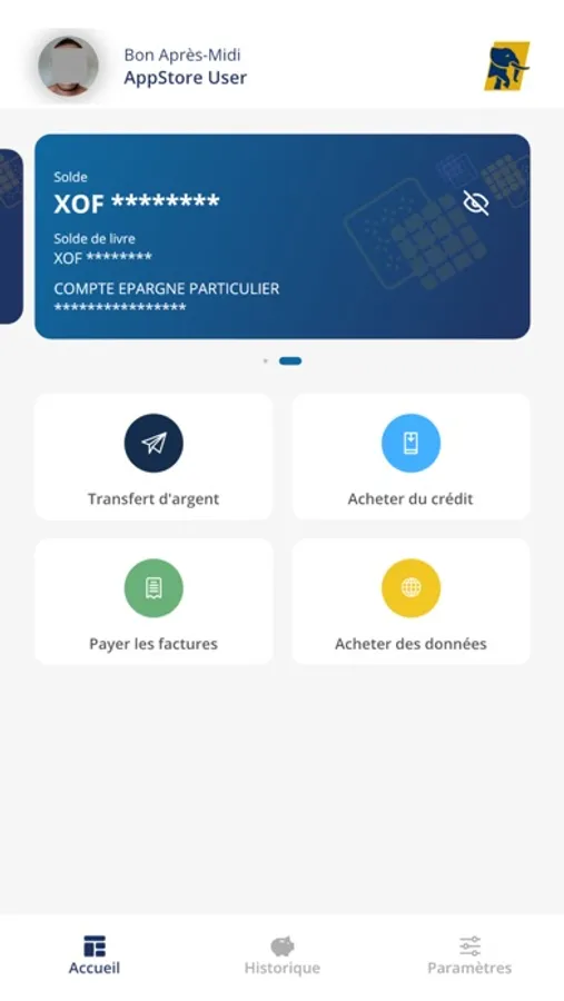 A unique feature of the app is that it gives you access to both your Wallet and account number. It also gives the option of language for transaction as you can switch between English and French.