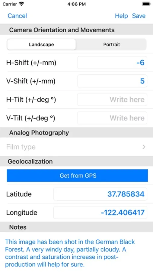 This simple but powerful app allows photographers who use manual lenses, technical/view cameras, adapted gears with digital or even analog film photography to take note of the most important parameters of each shot taken on the field.