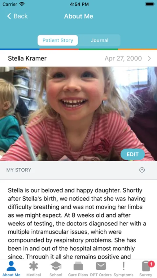 The Story Mobile application is a health management input/display application that aggregates elements of a patient’s health story collected from individual patient input, EHR, Hospital, Payer, and other data sources. The application presents comprehensive, up-to-date, contextual data. The Story application is intuitive, promotes self-management, and allows collaboration and care coordination to positively impact outcomes for all populations, including - pediatrics, chronic disease, acute care, complex care, and aging. Access to the Story app is through Provider invitation. If this app is one that would be of use to you and your family, please have your Provider contact admin@cloudforestsolutions.com