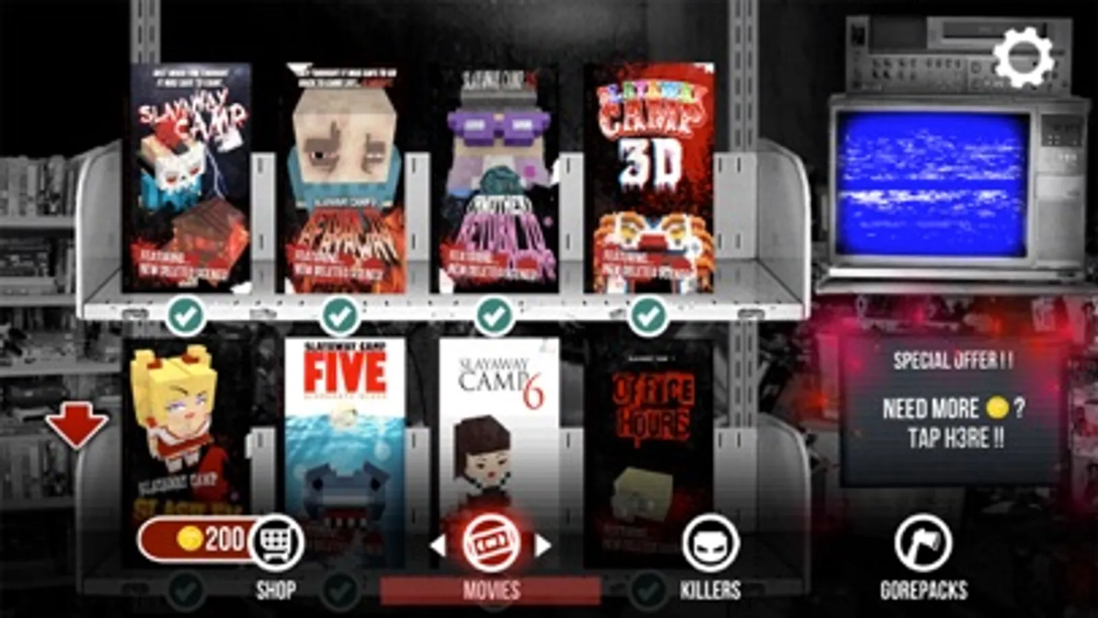 From the makers of Friday the 13th: Killer Puzzle, Slayaway Camp: Free 2 Slay is an award-winning diabolical puzzle game that also happens to be a bloody tribute to the VHS era of videotape horror! No one is safe… no law enforcement enforces enough law… and no animals or children are harmed… in the summer horror blockbuster of 1984... Slayaway Camp!