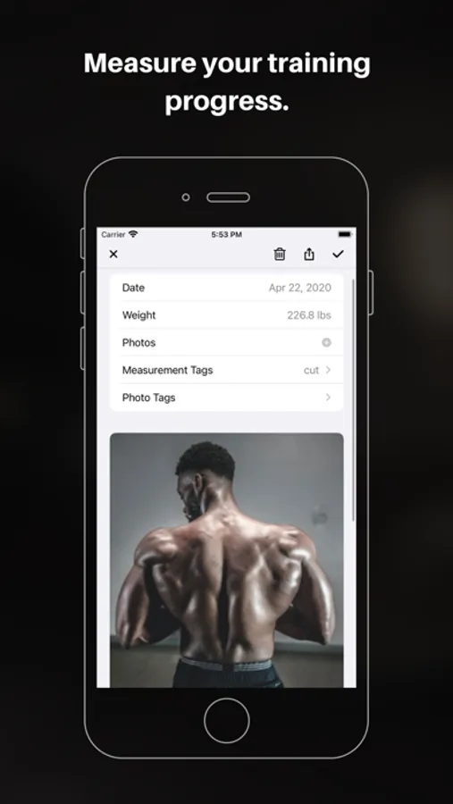Sometimes the scale doesn't move but that doesn't mean you aren't making progress. Enhance your measurements by logging photos to get an idea of your visual progress throughout your training journey.