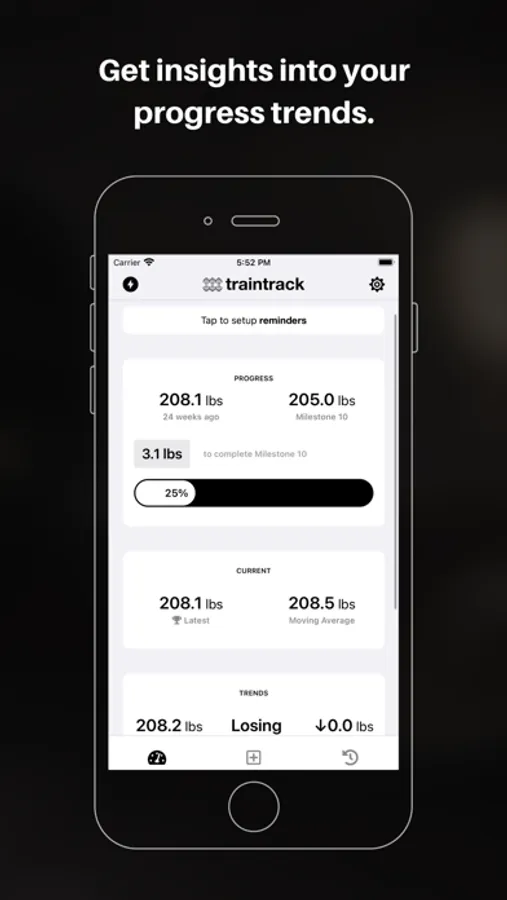 Traintrack lets you easily track your fitness progress. Enter your weight and add optional photos to create a log of measurements. View insightful metrics based on your weight data.