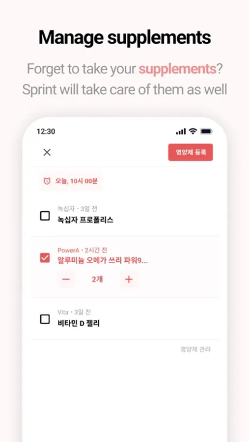 Record and manage your supplements with Sprint as well.