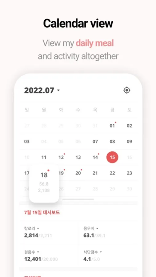 You can easily check the amount of intake compared to the recommended intake in a ratio and graph.