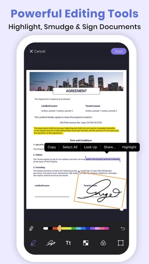 - PDF Scanner document editing tool enabled you to conveniently highlight, adding notes, draw on documents.
