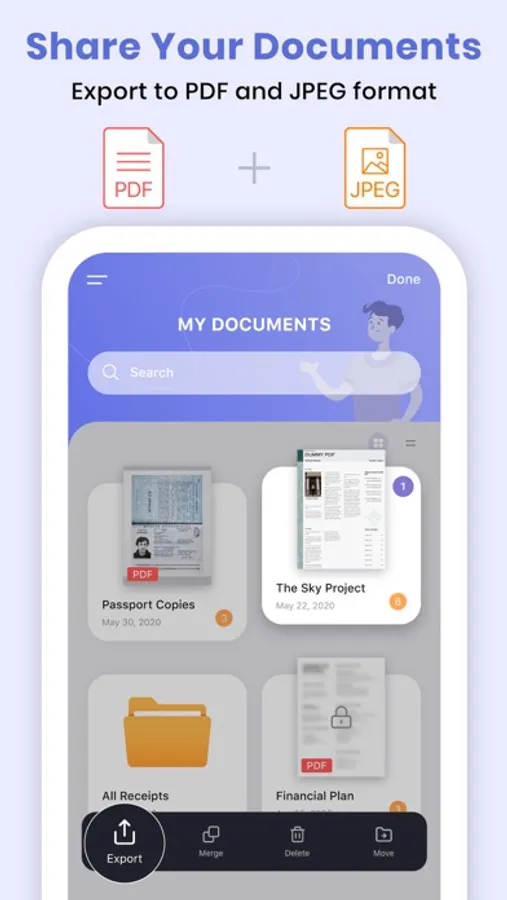 - All scanned documents in JPEG and PDF can be stored in the same folder for better organization of documents