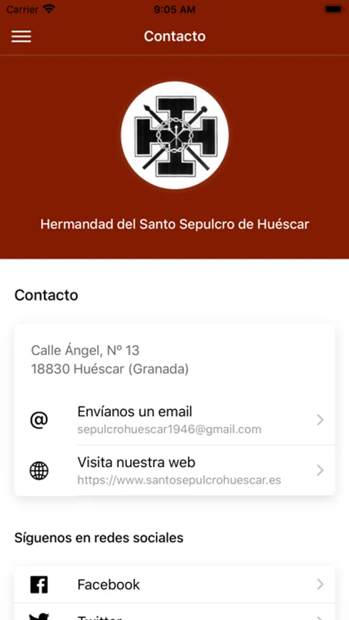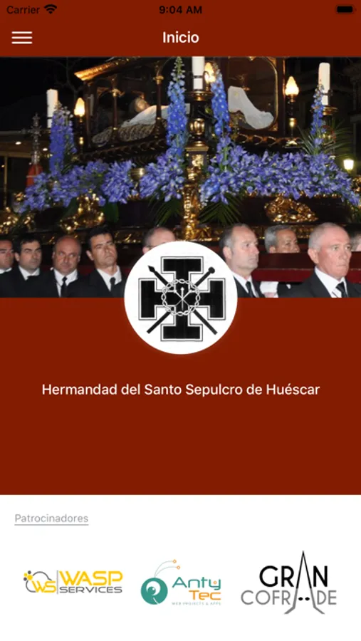 Aplicación Oficial de la Hermandad del Santo Sepulcro de Huéscar, próximas salidas y acceso identificado para los hermanos/as en el que pueden consultar/modificar sus datos personales, consultar recibos y recibir notificaciones de la Cofradía.