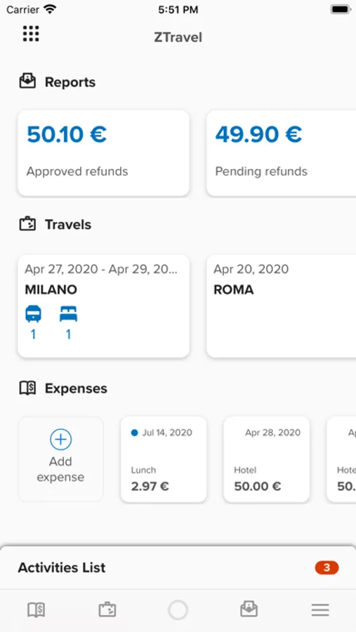 The ZTravel App is available for all companies that already use the Infinity ZTravel software for the management of transfers and expense reports. Thanks to the integration, the App offers the certainty of having all fields, rules and policies automatically aligned with the ZTravel software and automatic synchronization of data managed by mobile.