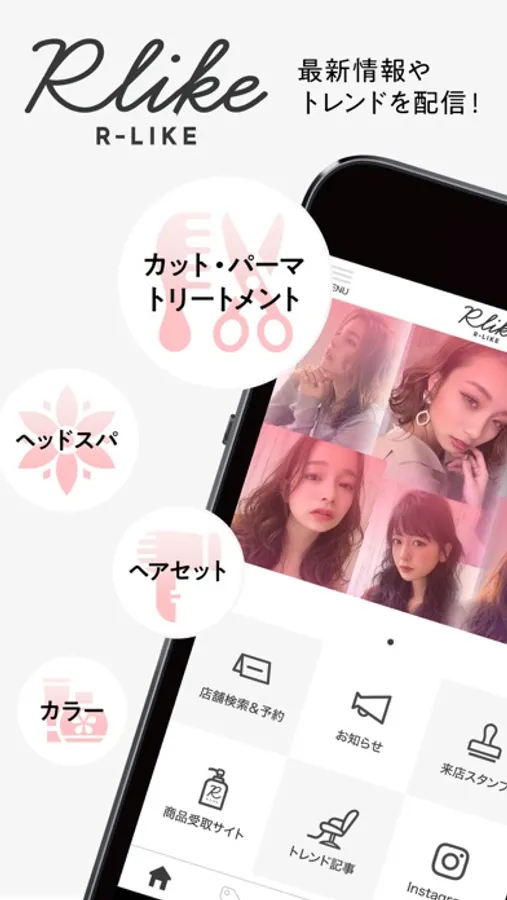 最新情報や来店スタンプやトレンド配信、美容商品受取サービスを提供します。