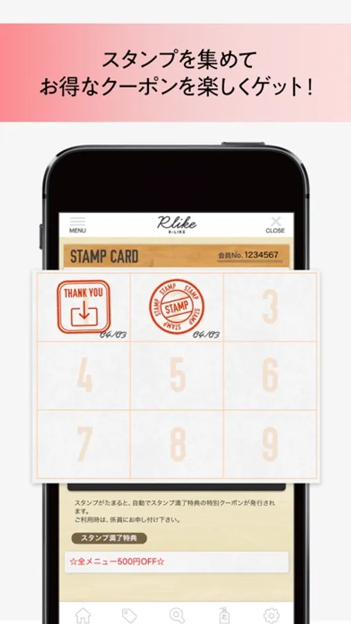 お店でもらえるスタンプを集めて、お得なクーポンが受取れます。