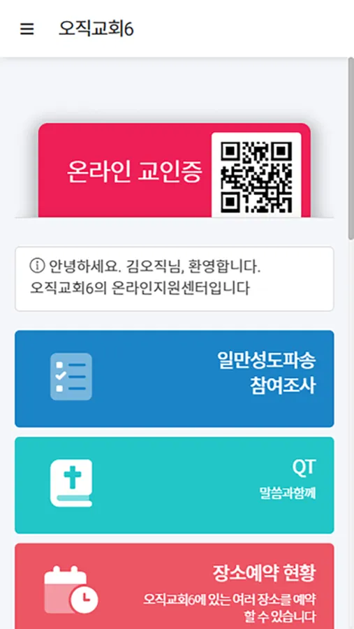 오직교적에 회원교회의 교인분들에게 제공되는 서비스 입니다.