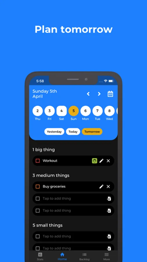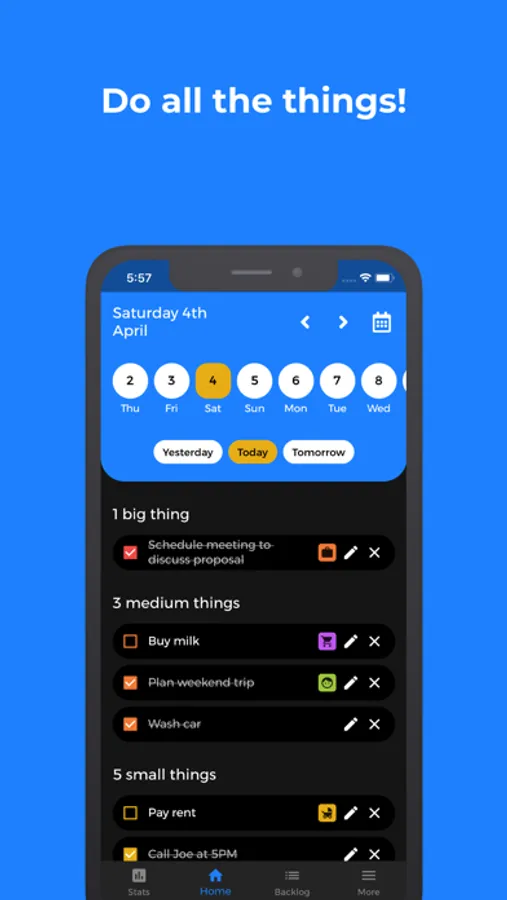 On any given day, assume that you can only accomplish one big thing, three medium things, and five small things, and narrow down your to-do list to those nine things.