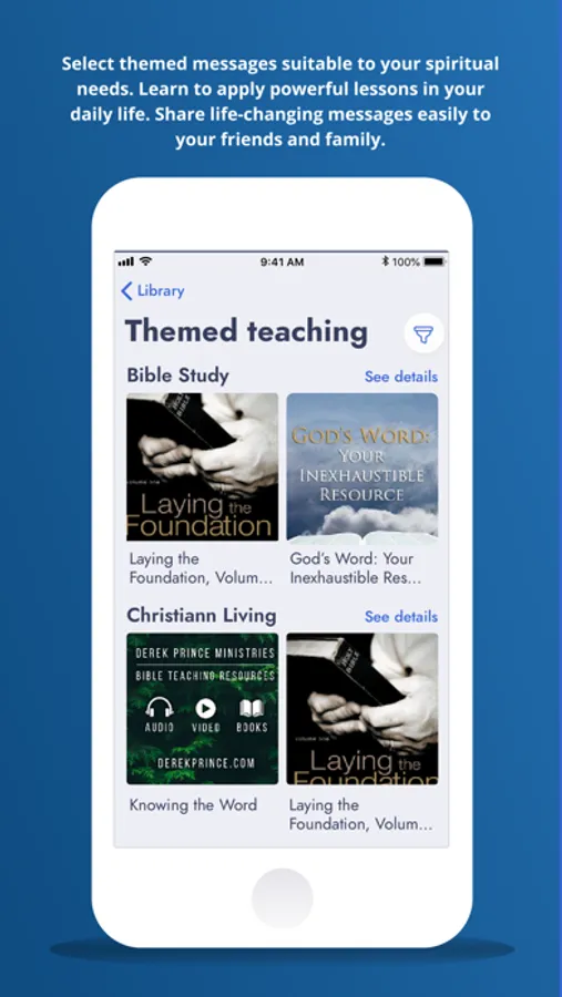 The Derek Prince Bible Teaching App brings you daily devotional content from the internationally recognised author and Bible teacher, Derek Prince. Select themed messages suitable to your spiritual needs. Learn to apply powerful lessons in your daily life. Share life-changing messages easily to your friends and family.