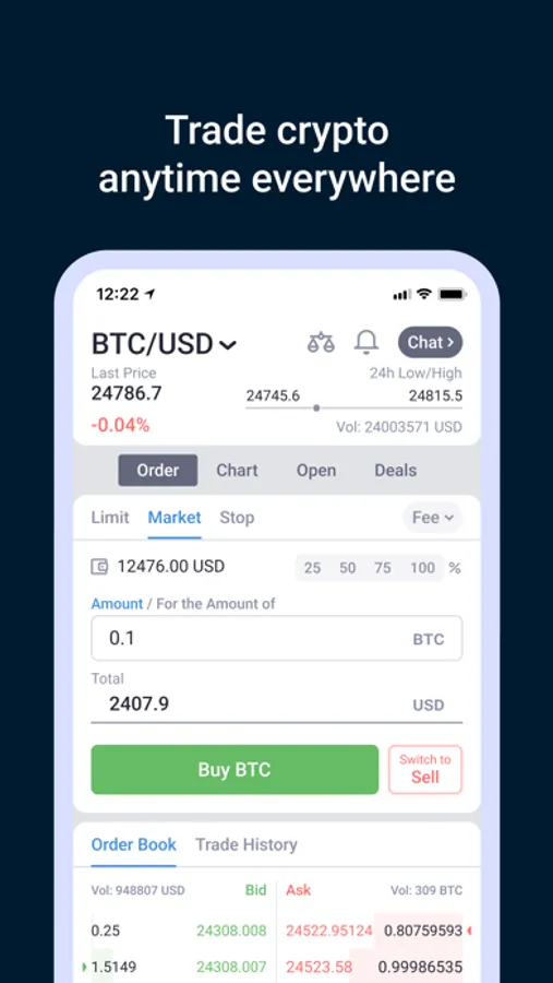 Our support team is here to provide you with all required information — be it questions regarding deposits, withdrawals or the order type that will work best for you.