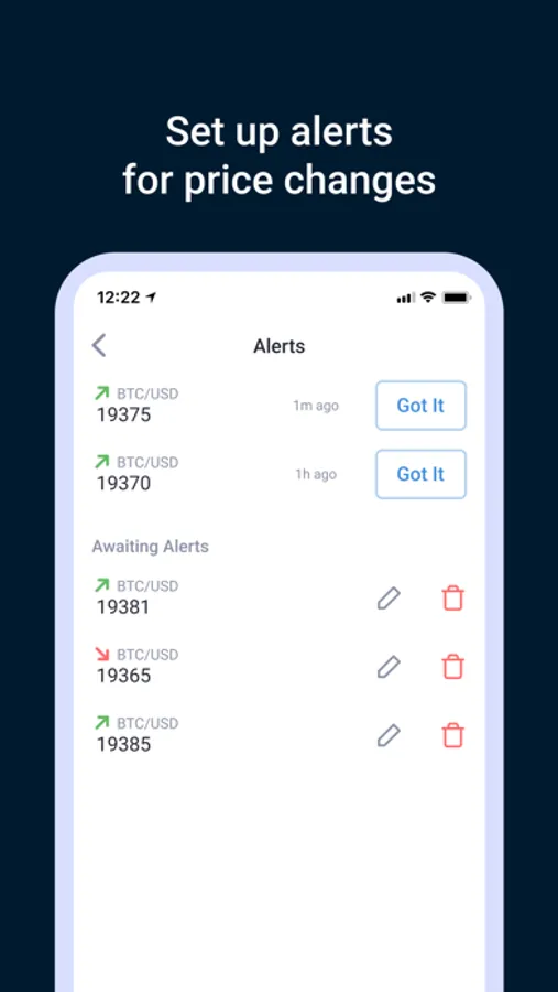 - Price alerts — keep track of bitcoin and other cryptocurrencies with instant notifications.