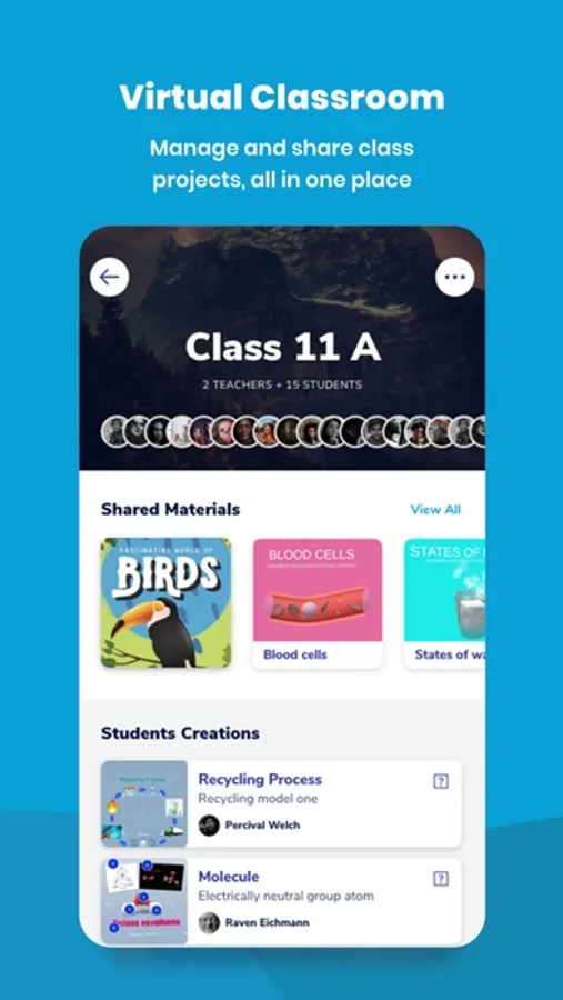 Easily share AR lessons and collect projects from students in one place with the virtual classroom feature. Manage classes according to subjects and invite members in, so it’s easy for everyone to find things and see what’s going on.