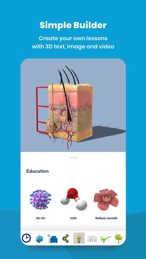 Making your own lessons is also easy. Save your time by picking the best images from our library of 3D models. From straight-up educational models to characters, animals, nature, buildings, even fantasy objects — use them as they originally are or transform them into your desired shapes.