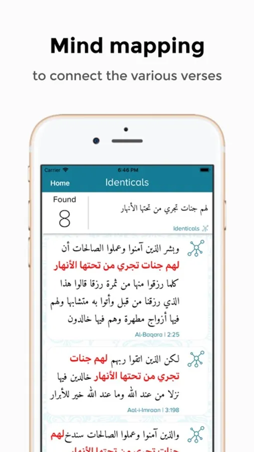 Itqan is built with algorithms that map the identical parts of the Ayat iterating over the entire Qur'an in just about milliseconds and available for access.