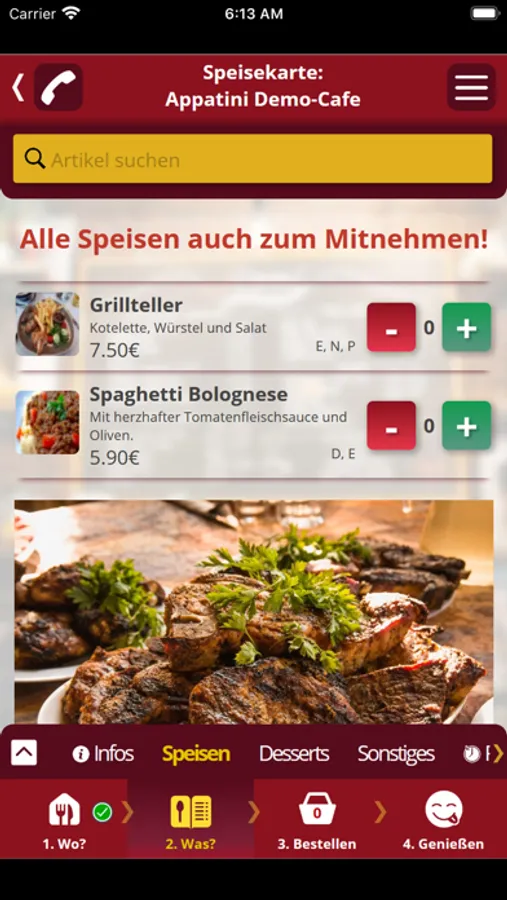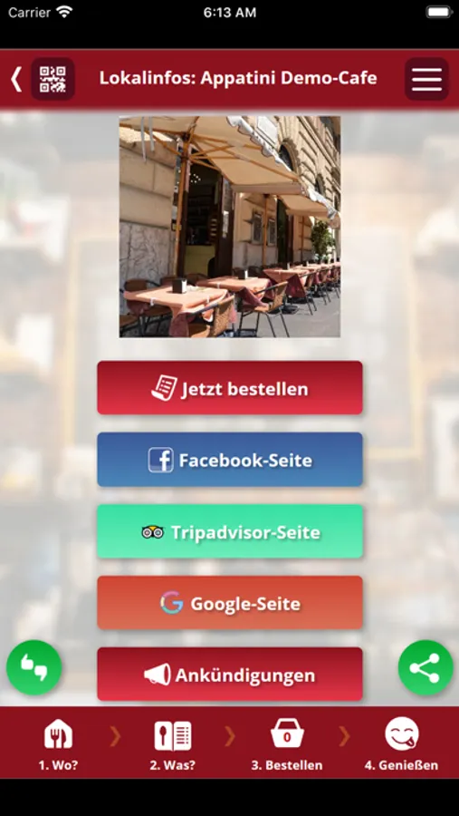 - Sichtbarkeit: Dein Restaurant wird in Appatini gelistet → Mehr Neukunden, Begeisterung deiner Stammkunden, cooler Schnitzelfinder ("wo gibt es in der Nähe ... z.B. Steak ?")
