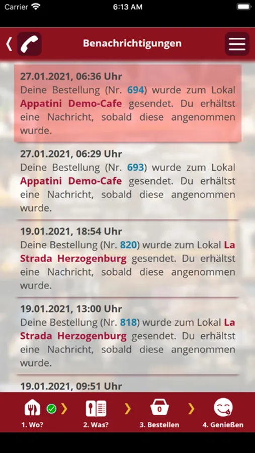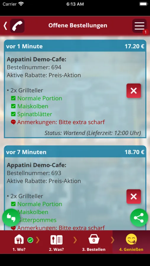 - Bestelle zum Abholen, zum Liefern oder an den Tisch