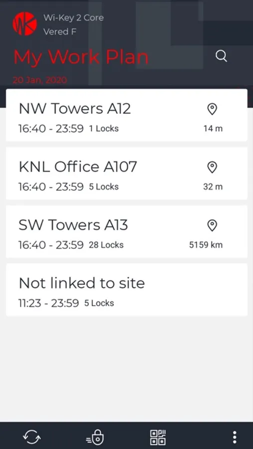 Use the application to view your daily work plan, navigate to sites, retrieve keys, unlock, relock and confirm locking, geofencing, lock maintenance and alerts.