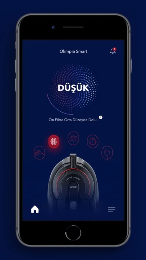 Süpürgenizi ilk günkü yüksek temizlik performansıyla kullanmak için ön filtrenin düzenli olarak temizlenmesi gerekmektedir. Olimpia Smart sensörler yardımıyla ön filtrenin doluluk oranını ölçer. Her zaman yüksek performans almanız için maksimum doluluk oranına ulaştığında uyarı verir. Ön filtrenizi yıkayarak temizleyip, kuruttuktan sonra yeniden kullanabilirsiniz. İhtiyaç durumunda servislerimizden yeni filtre temin edebilirsiniz.