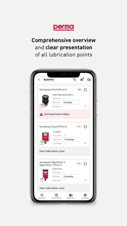 perma CONNECT provides you with a comprehensive overview of all your lubrication points. Our intelligent application ensures seamless access to critical lubrication point data at any time and from any location – even while on the go. By using perma CONNECT, you contribute significantly to improving safety within your organization, allowing for remote monitoring and control of perma lubrication systems in hard-to-reach or dangerous areas with ease and efficiency.