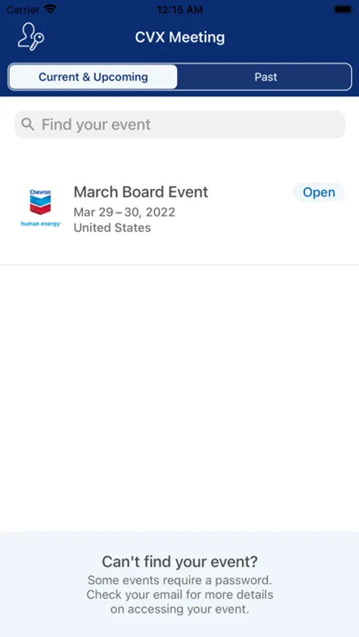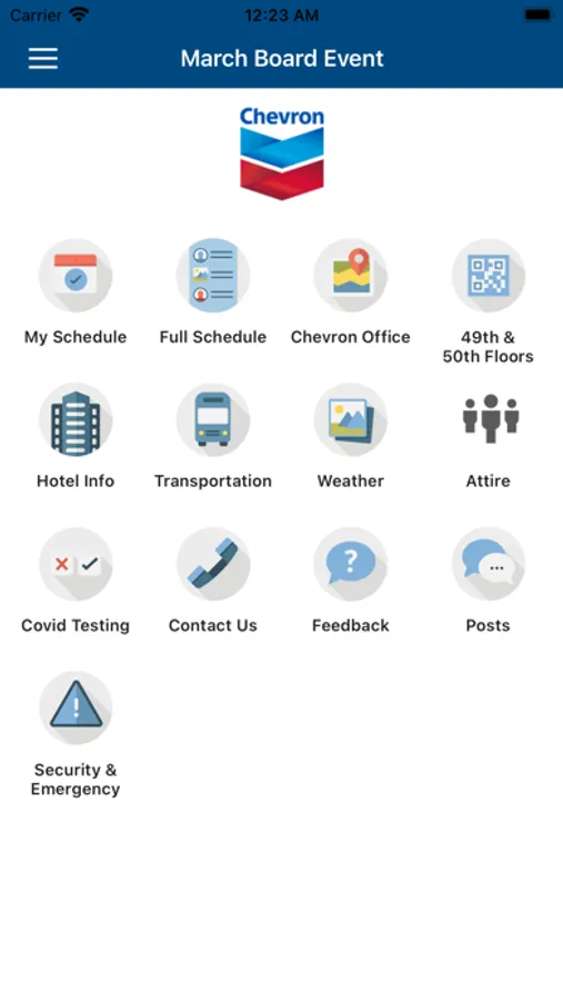 Chevron meeting and events app for company event management